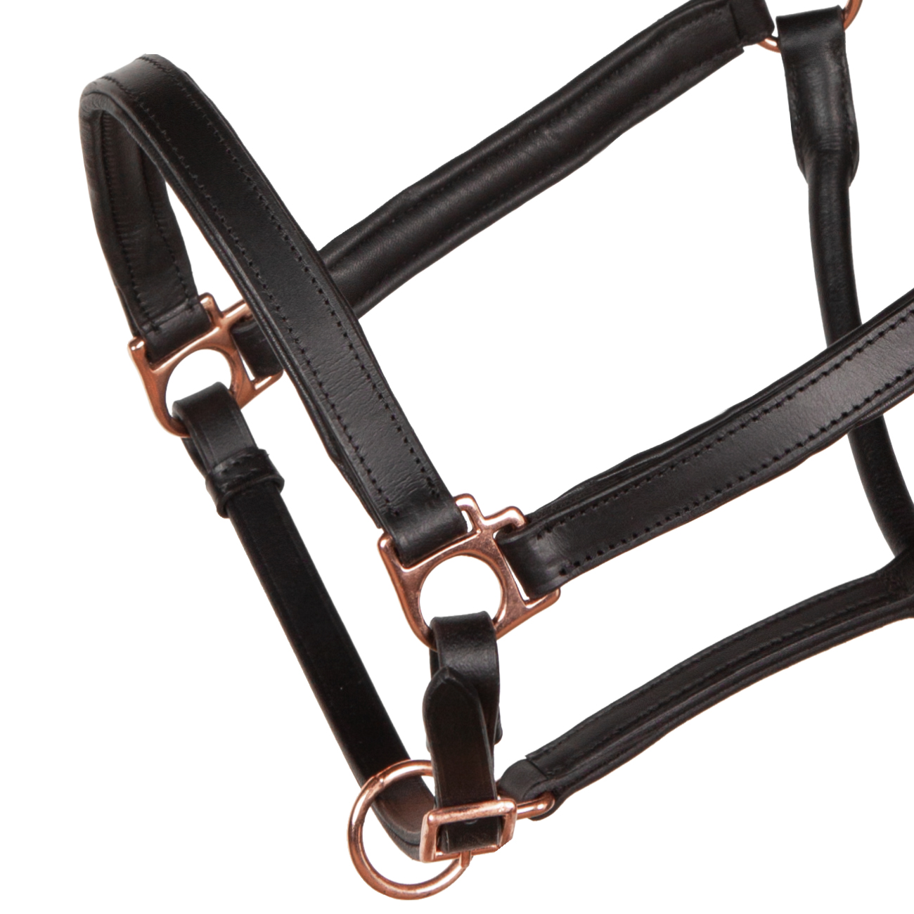 Das Lederhalfter "Rosegold" aus der Heinick ProLine Kollektion ist mit seinen rosegold Beschlägen und dem rundgenähtem Kehlriemen ein echter Hingucker! Dieses Lederhalfter gehört zu den Heinick ProLine Kollektion und ist aus bestem Qualitätsleder gefertigt. Mit wunderschönen und stabilen Beschlägen in rosé gold ist dieses Lederhalfter ein absolutes Must-Have! Das Lederhalfter "Rosegold" ist 3-fach verschnallbar und lässt sich an beiden Seiten des Genickstücks, sowie am rundgenähten Kehlriemen optimal anpassen. Für den besten Tragekomfort ist dieses Halfter an Genickstück und Nasenriemen extra weich gepolsert. Dieses exklusive Heinick ProLine Halfter ist in der Farbe Schwarz und den Größen Warmblut = Full und Vollblut = Cob erhältlich.